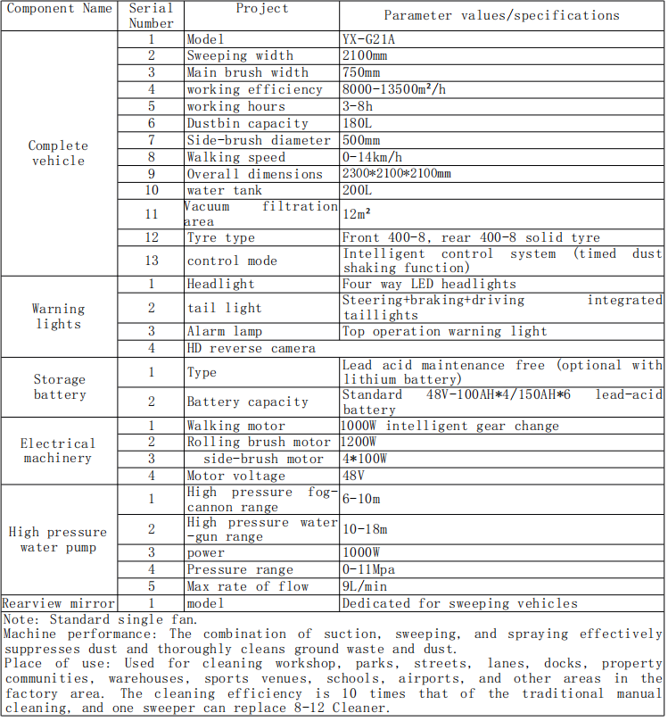 مكان الاستخدام: يستخدم لتنظيف الورش والحدائق والشوارع والممرات والأرصفة والمجتمعات العقارية والمستودعات والأماكن الرياضية والمدارس والمطارات ومناطق أخرى في منطقة المصنع. تبلغ كفاءة التنظيف 10 أضعاف التنظيف اليدوي التقليدي، ويمكن لمكنسة واحدة أن تحل محل منظف 8-12