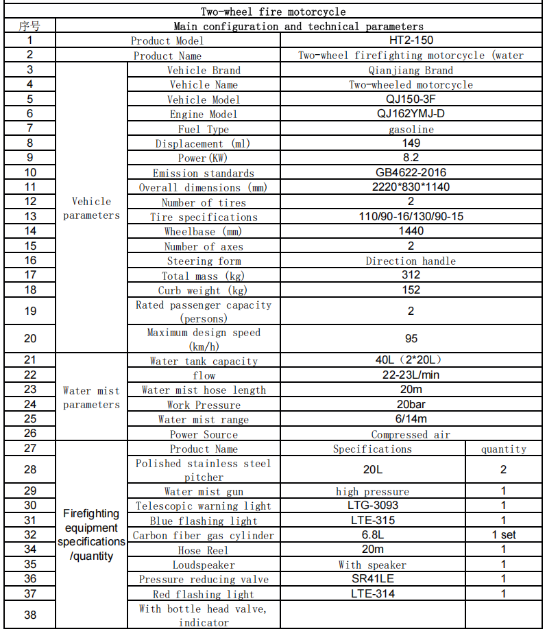 جسم السيارة صغير (يبلغ طوله عادة حوالي 2 متر وعرضه حوالي 0.8 متر)، ويمكنه التنقل بسهولة عبر الشوارع الضيقة والأزقة في مناطق المدينة القديمة وشوارع المشاة والطرق الجبلية ذات المناظر الخلابة والقرى الحضرية وغيرها من المناطق التي لا تستطيع سيارات الإطفاء الكبيرة الوصول إليها، مما يحل مشكلة تغطية الحماية من الحرائق في "الميل الأخير".
